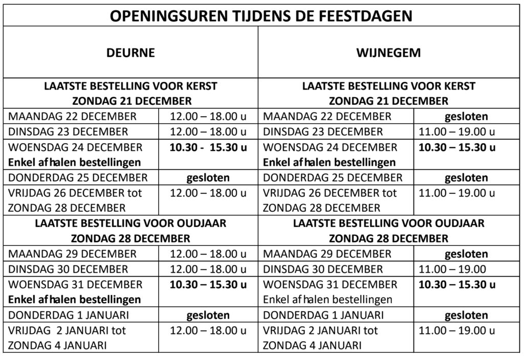 We vragen u vriendelijk om uw bestelling minstens 3 dagen op voorhand door te geven. Wenst u iets écht unieks? Neem dan even contact met ons op, graag twee weken op voorhand, en we bespreken hoe we uw wildste dromen kunnen waarmaken.